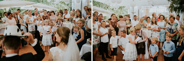 The Friday wedding started at the farm of bride’s grandparents with a civil ceremony. Followed by church ceremony in Steyr. Celebration and reception happened in Orangerie im Schlosspark in Steyr.reception venue: Orangerie Steyr – Austria