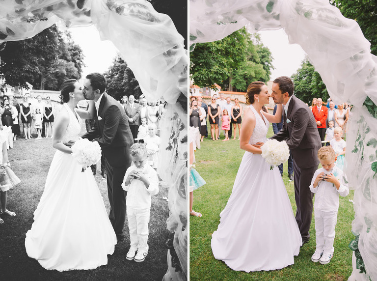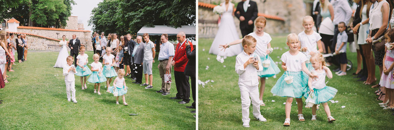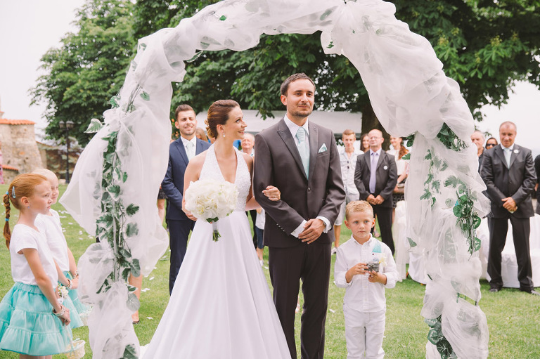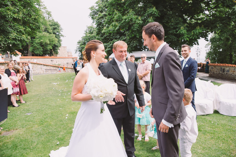 Ceremony and the reception was placed at Most castle Hnevin. Marketa, the bride, was gorgeous. There were no signs that she is expecting her first son. The pregnancy belly was perfectly hidden in the wedding gown by Svatebni Salon Delta.
